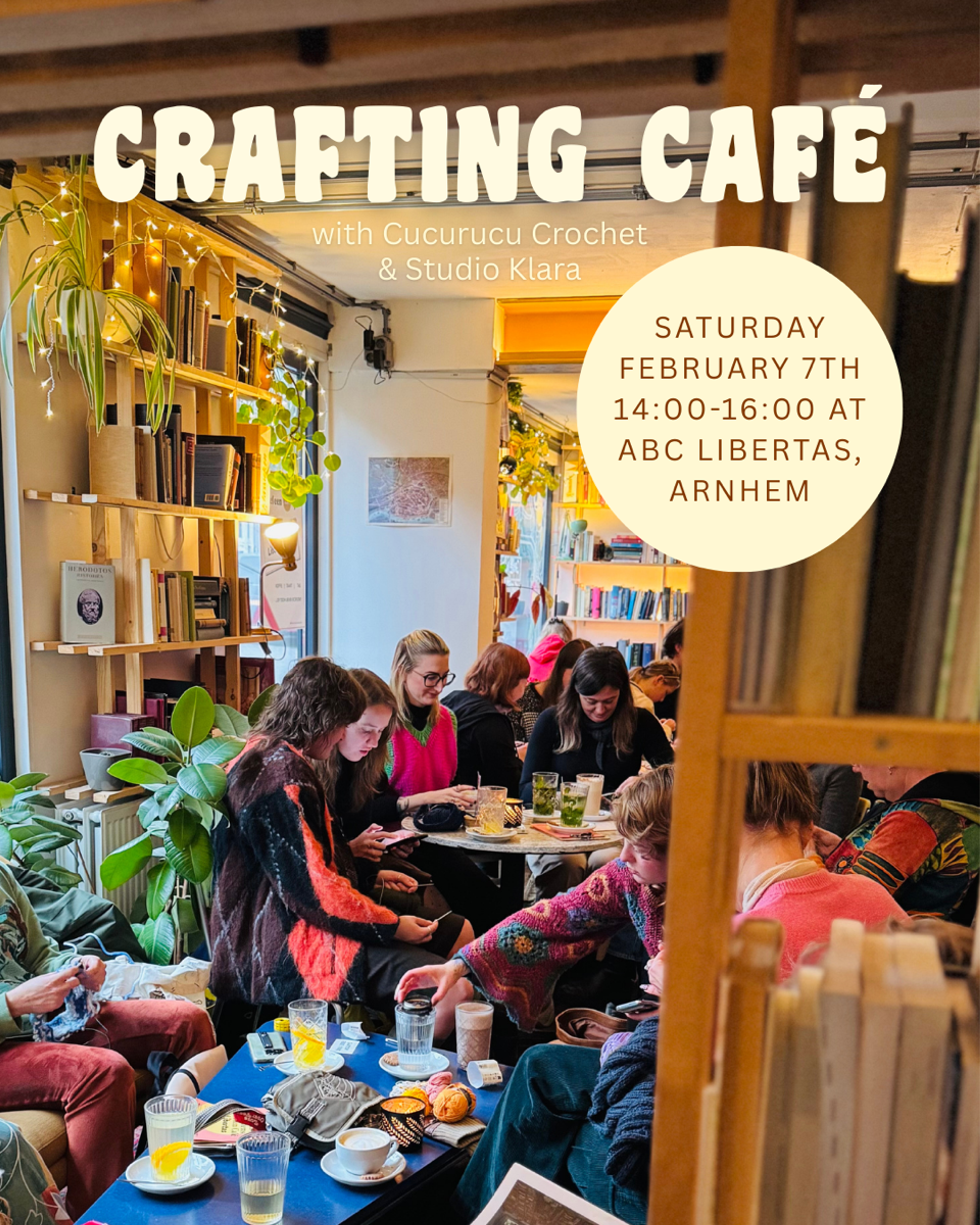 The Crafting Café returns to ABC Libertas! On February 7th from 14:00-16:00, Cucurucu Crochet and Studio Klara will host a get-together for knitters and crocheters. Bring your own project and join us for a cozy afternoon of crafting!