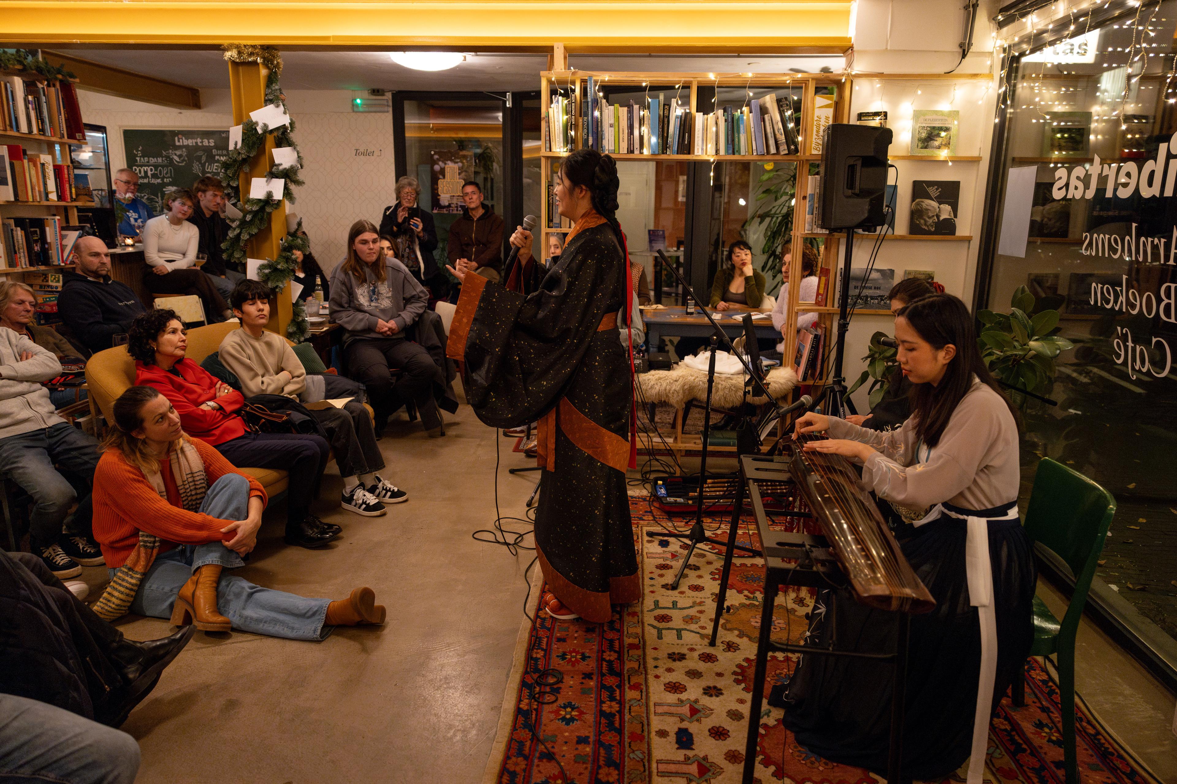 De Wageningse zangeres Shuhang Wang brengt traditionele Chinese muziek ten gehore tijdens de tweede editie van de Folk Sessions. In deze nieuwe reeks concerten in het Arnhems Boeken Café (ABC ) Libertas luister je elke maand naar live muziek uit verschillende landen en culturen. Op 29 november kun je genieten van de traditionele Chinese muziek van drie muzikanten uit de groepSweetPotato: Shuhang Wang (zang), Huizhi Lin (op bamboefluit) en Leyun Cheng (op qin).